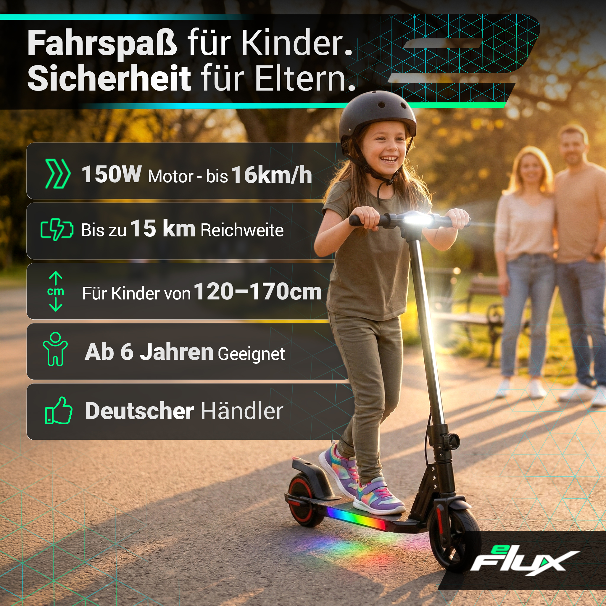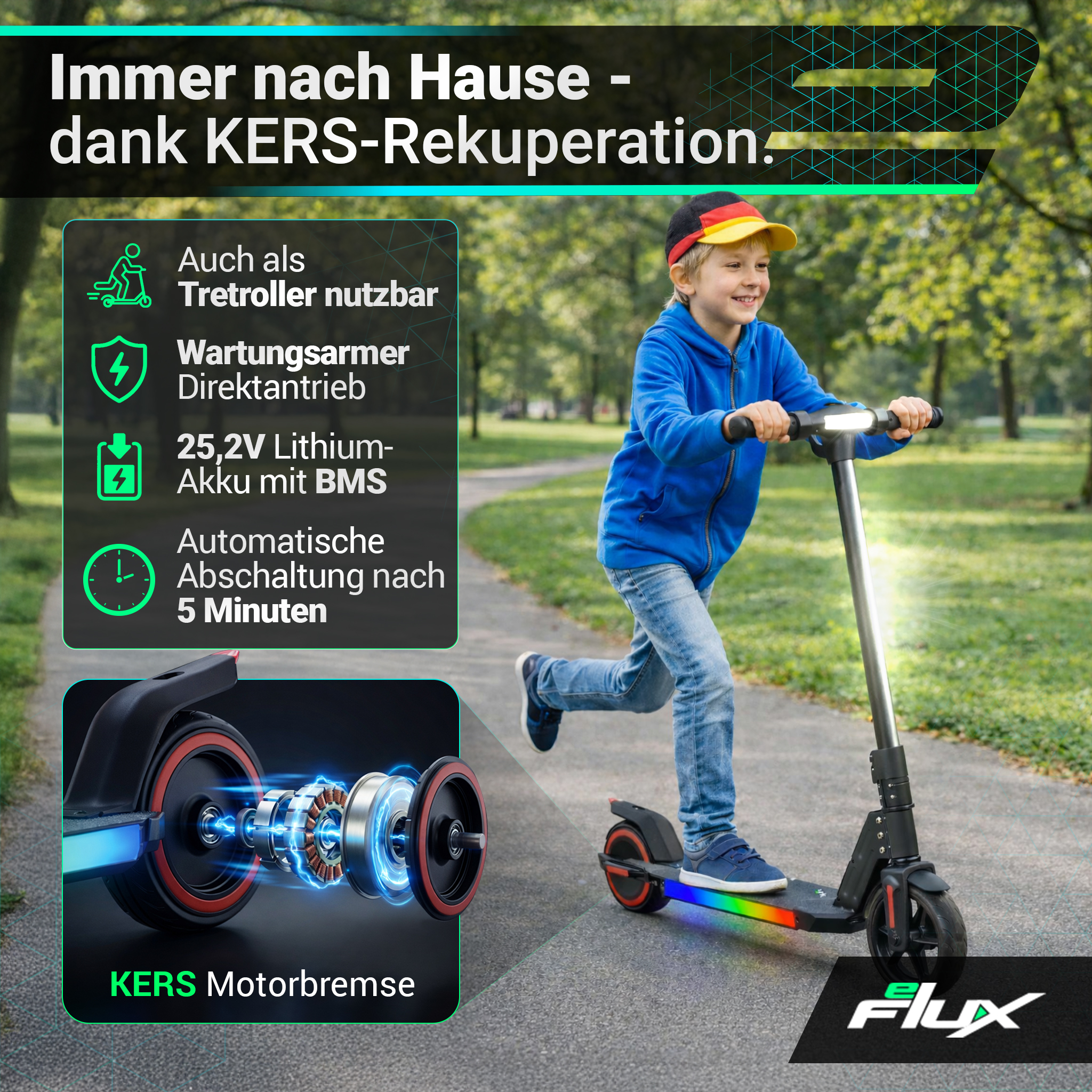 | Ihr eFlux Kids K1 im Überblick | |