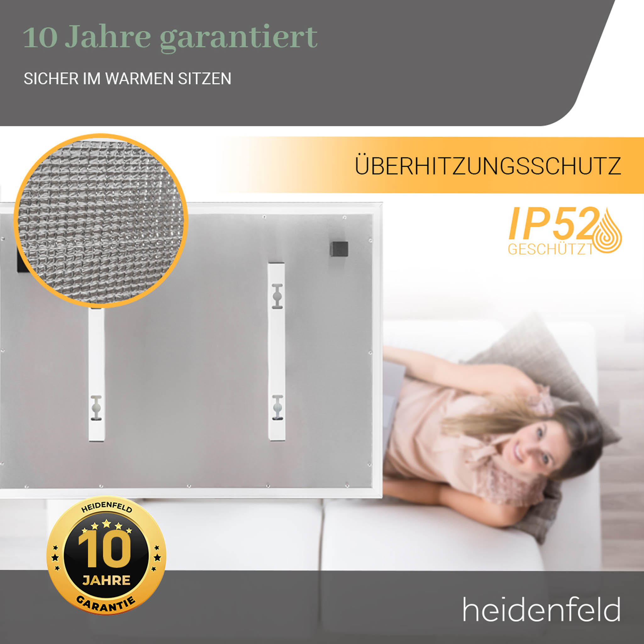 Gemäß IP52 ist die Infrarotheizung gegen Staub und Tropfwasser geschützt. Durch den Überhitzungsschutz läuft die Elektronik nicht heiß. Und das Beste: Für all das gewährleisten wir Ihnen eine lange Garantie von 10 Jahren.