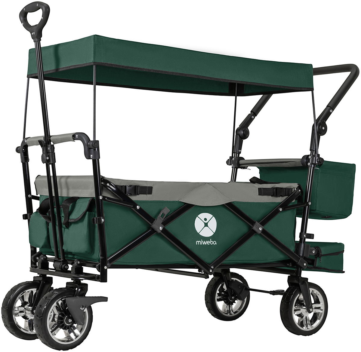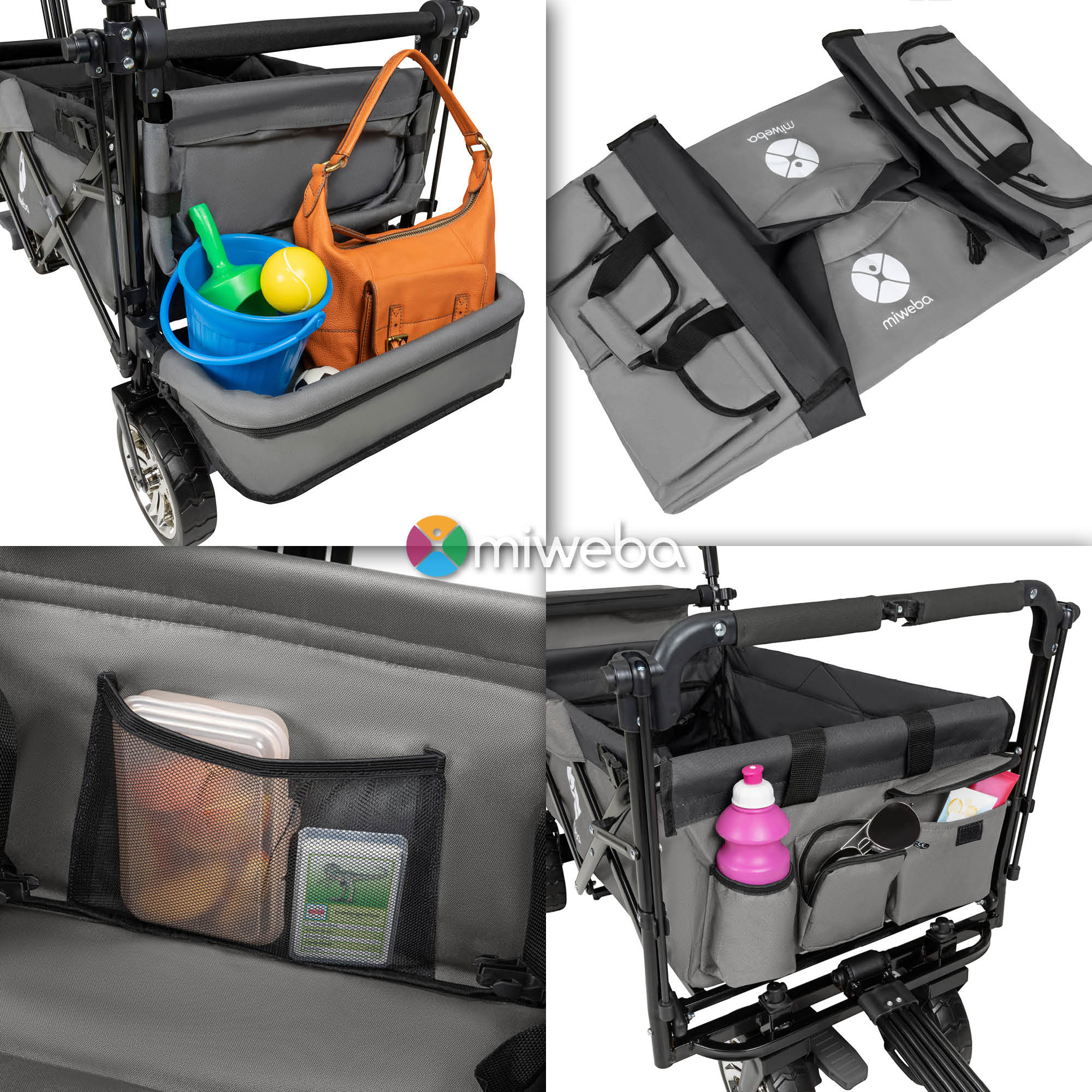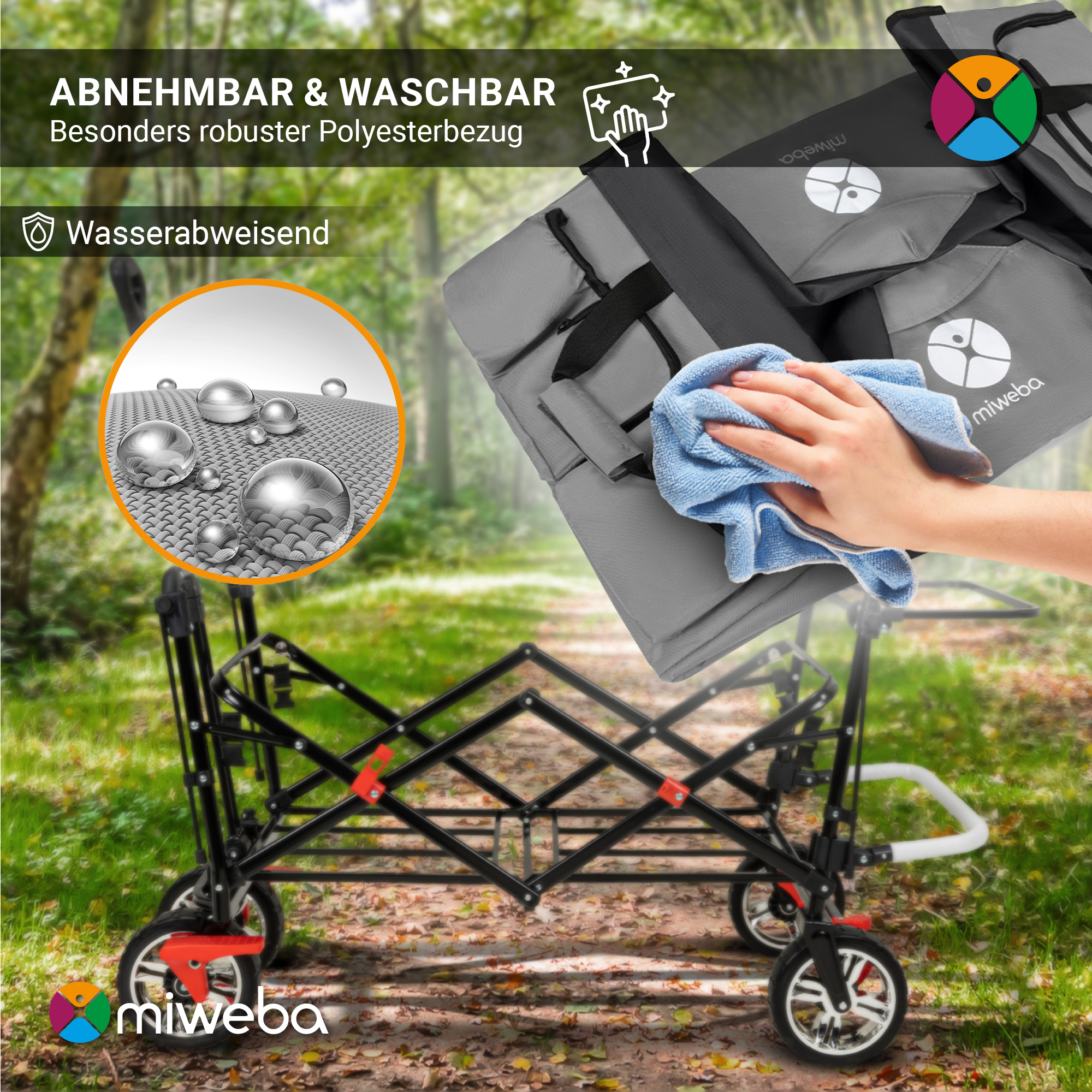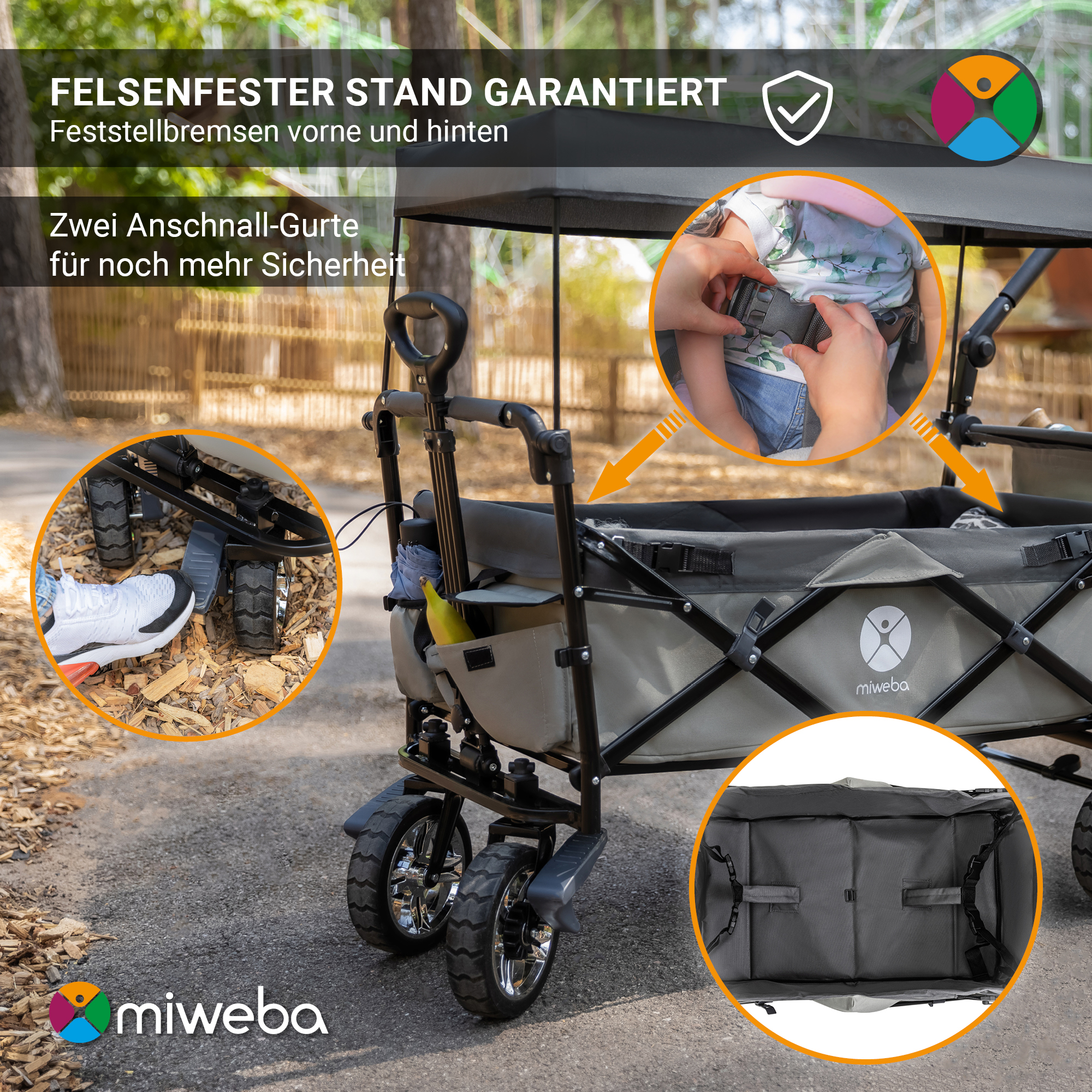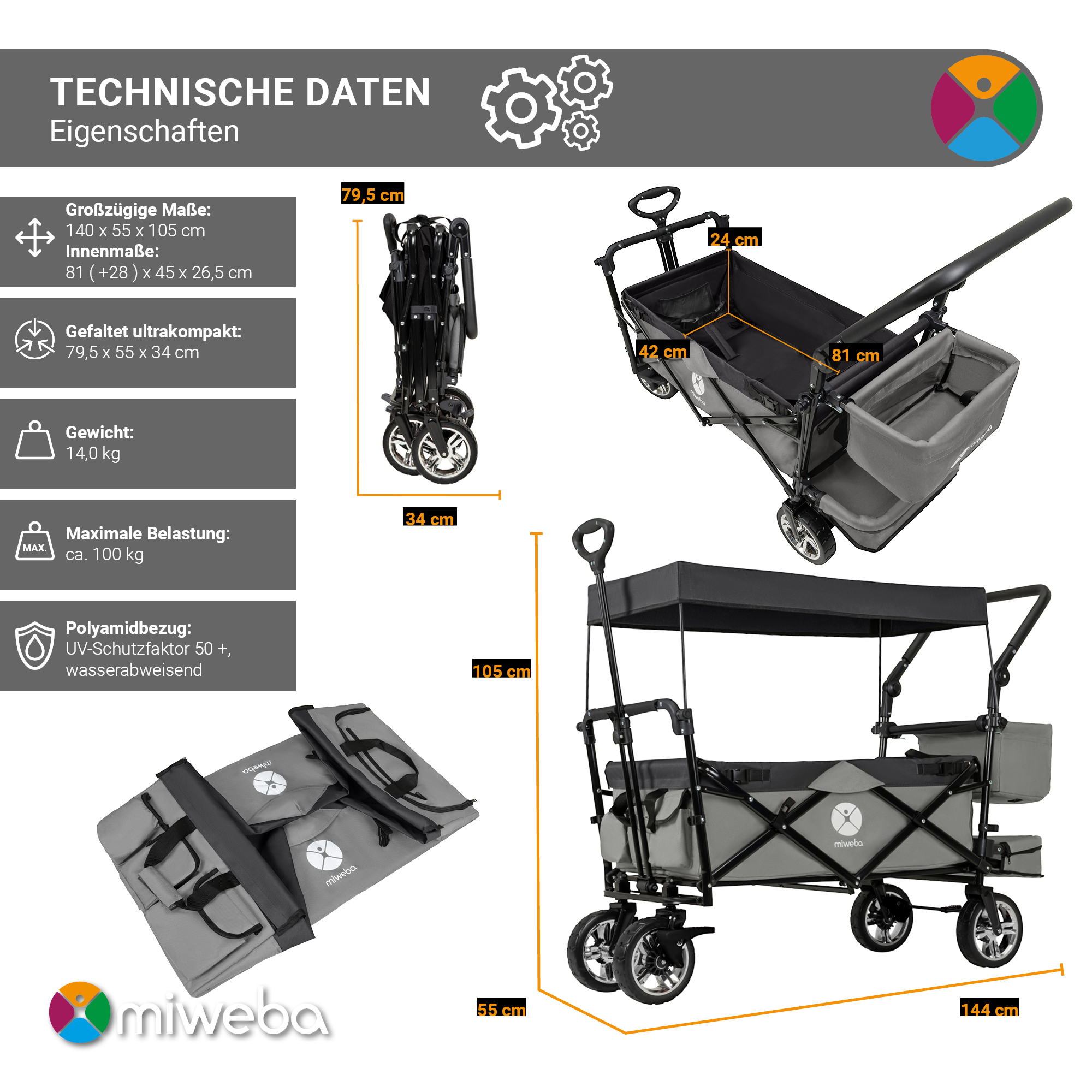 Miweba Bollerwagen MB-20 faltbar, Sonnendach, Schiebe- & Zugstange, Stauraumverlängerung, 360°-Räder