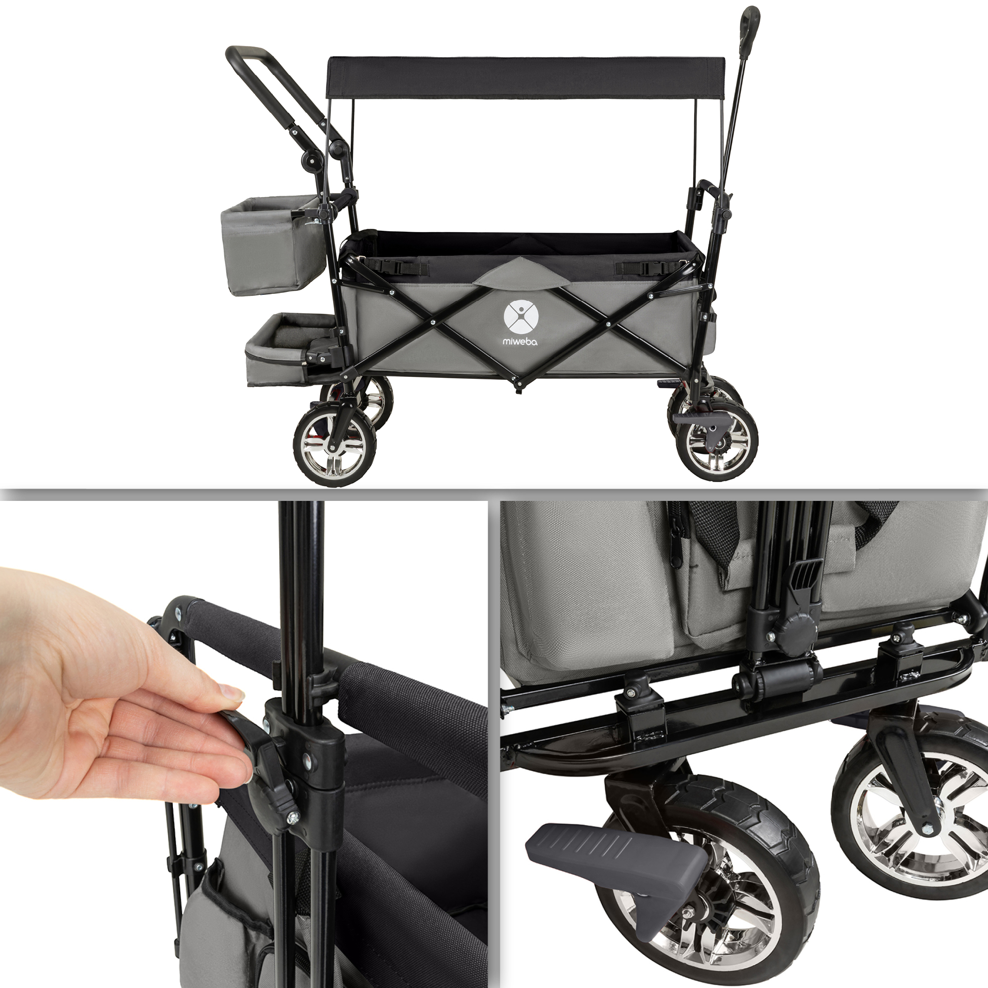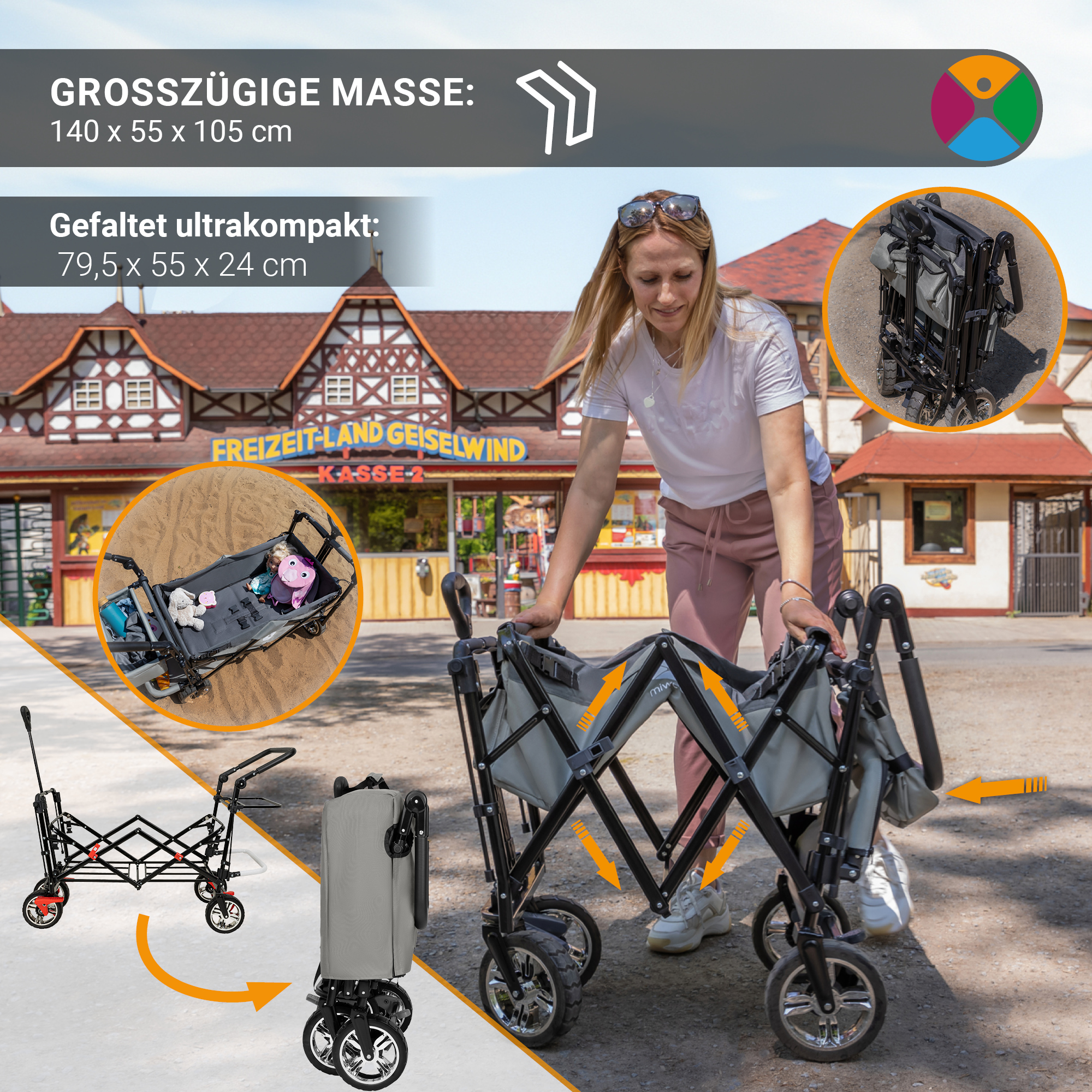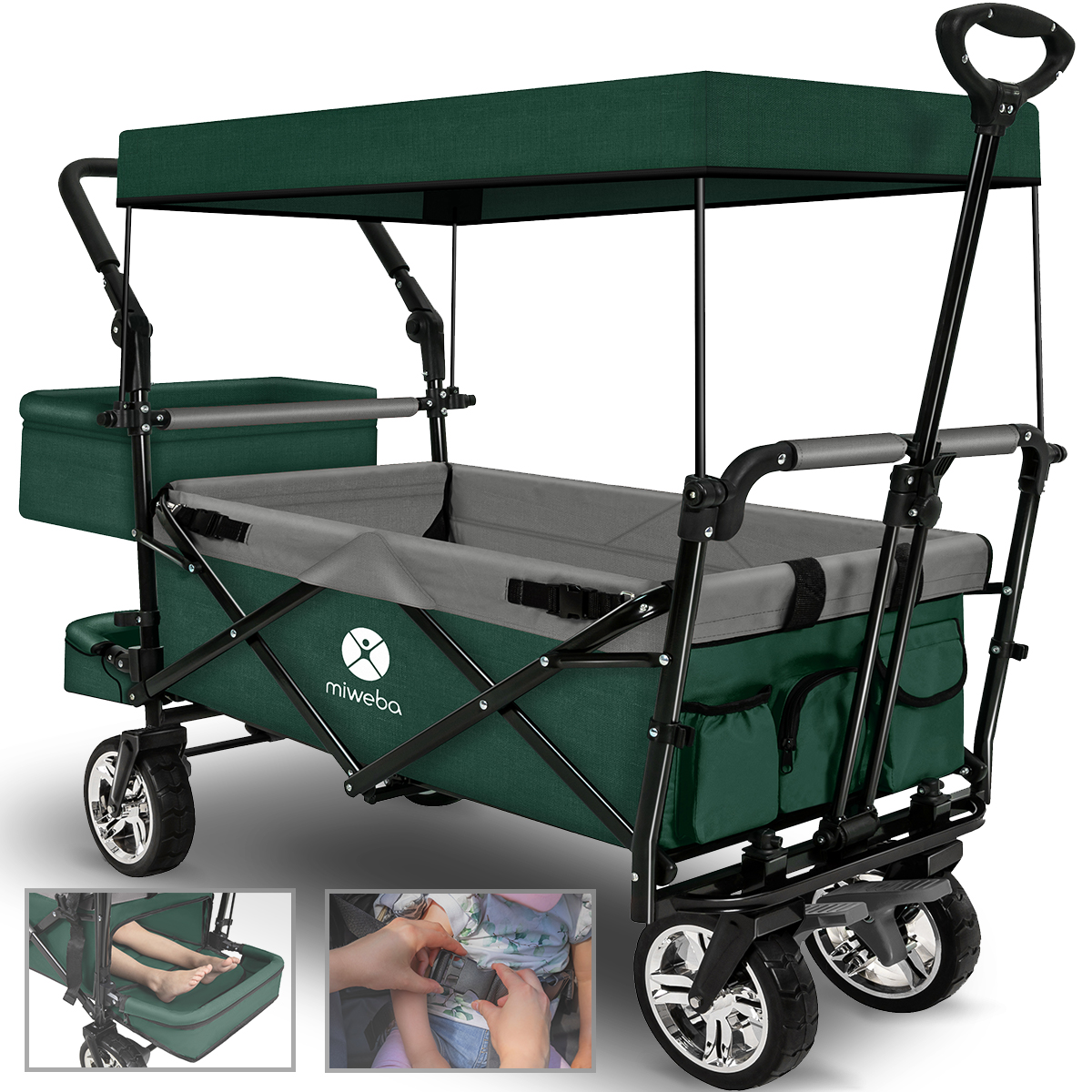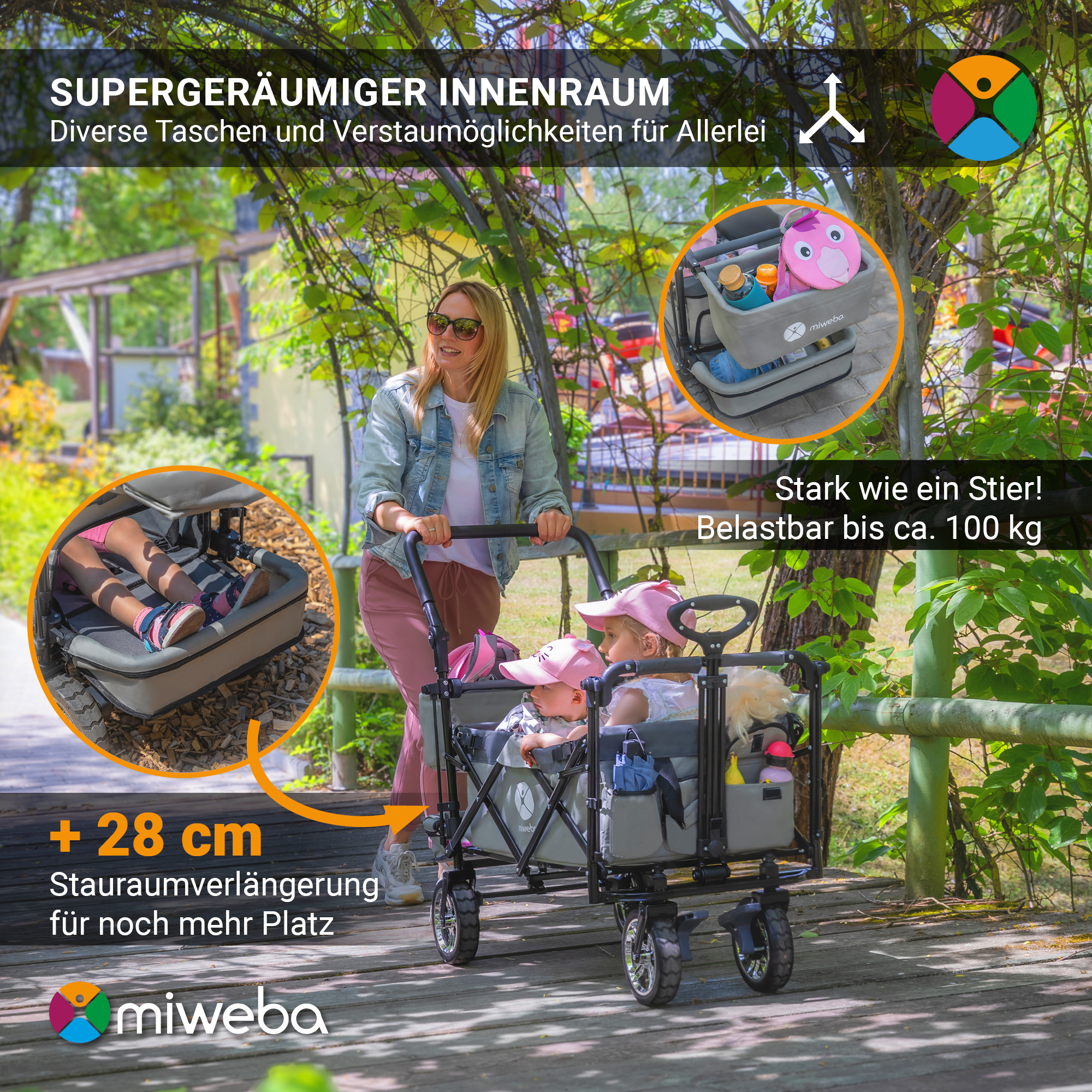 Miweba Bollerwagen MB-20 faltbar, Sonnendach, Schiebe- & Zugstange, Stauraumverlängerung, 360°-Räder
