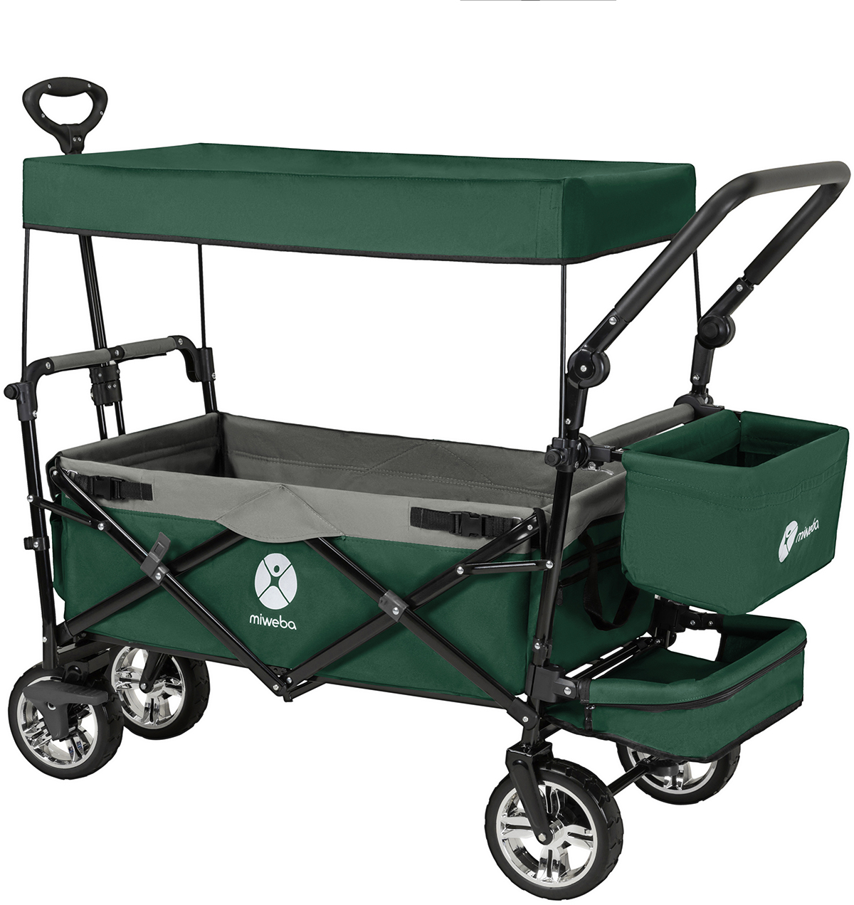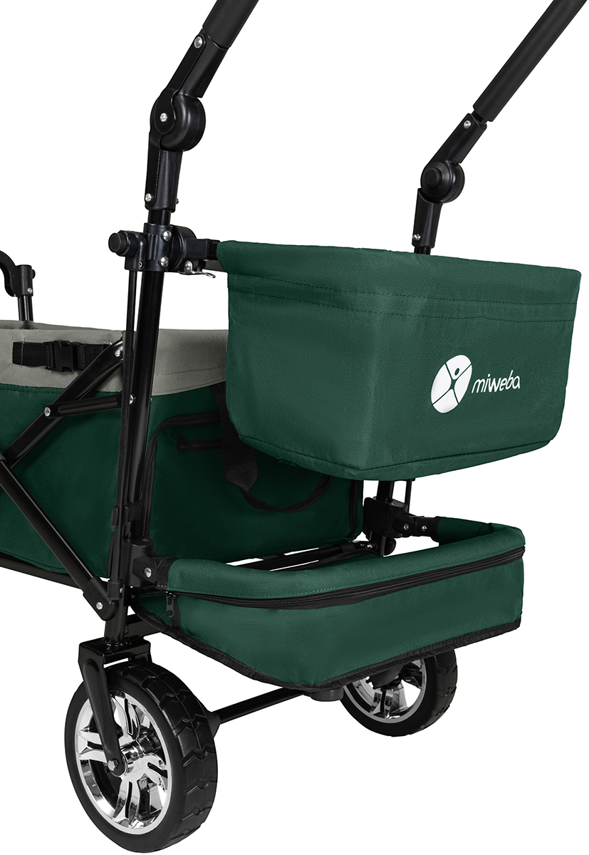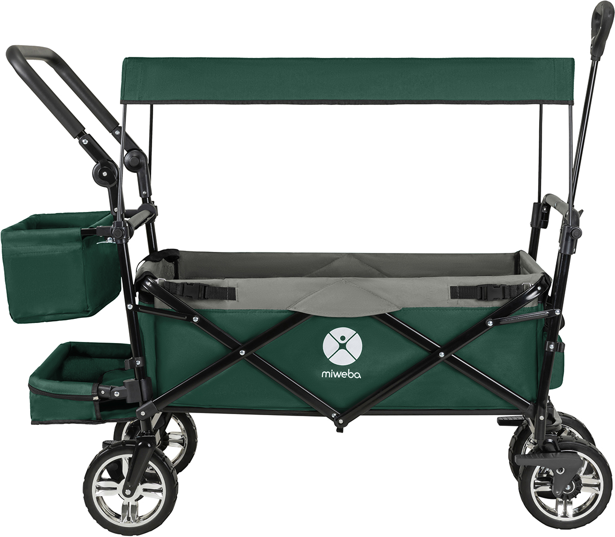 Lange Touren mit dem Kind entspannt und sorgenfrei genießen? Dafür ist genügend Stauraum für Spielzeuge, Getränke und Snacks unerlässlich. Deshalb ist der Miweba Bollerwagen MB-20 mit allerlei Taschen und Fächern ausgestattet. Darin finden Sie mit einem Handgriff sofort, was Sie gerade brauchen.