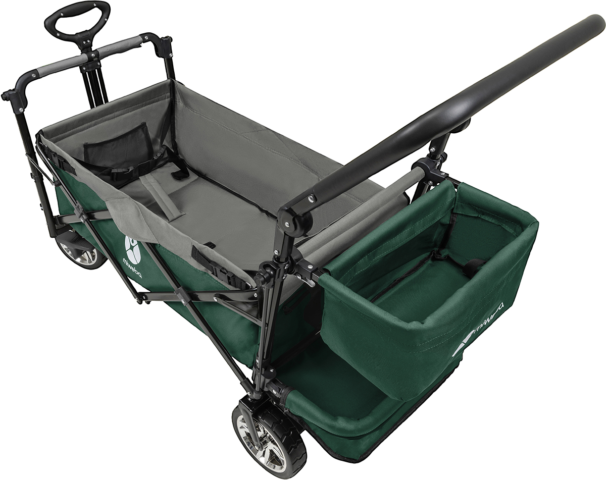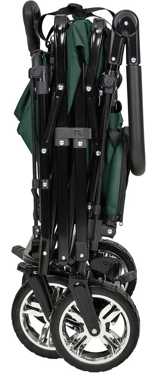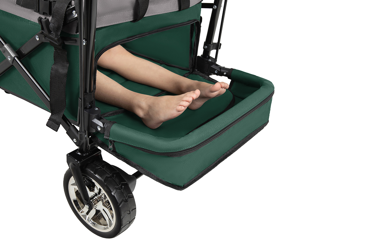 Zusammengefaltet ist er dann lediglich 79,5 x 55 x 24 cm klein. Ob im Urlaub, auf Tagesausflügen oder beim Spaziergang in den Park: Bequem im Kofferraum verwahrt steht der Bollerwagen für den nächsten Einsatz parat.