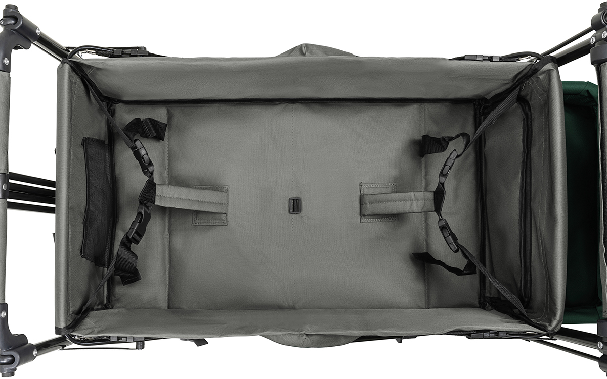 Ein besonderes Highlight ist die Stauraumverlängerung. Damit wächst der Innenraum des praktischen Transportwagens um ganze 28 cm. Und schon ist genug Platz für einen weiteren Einkaufskorb oder ausgestreckte Füße.