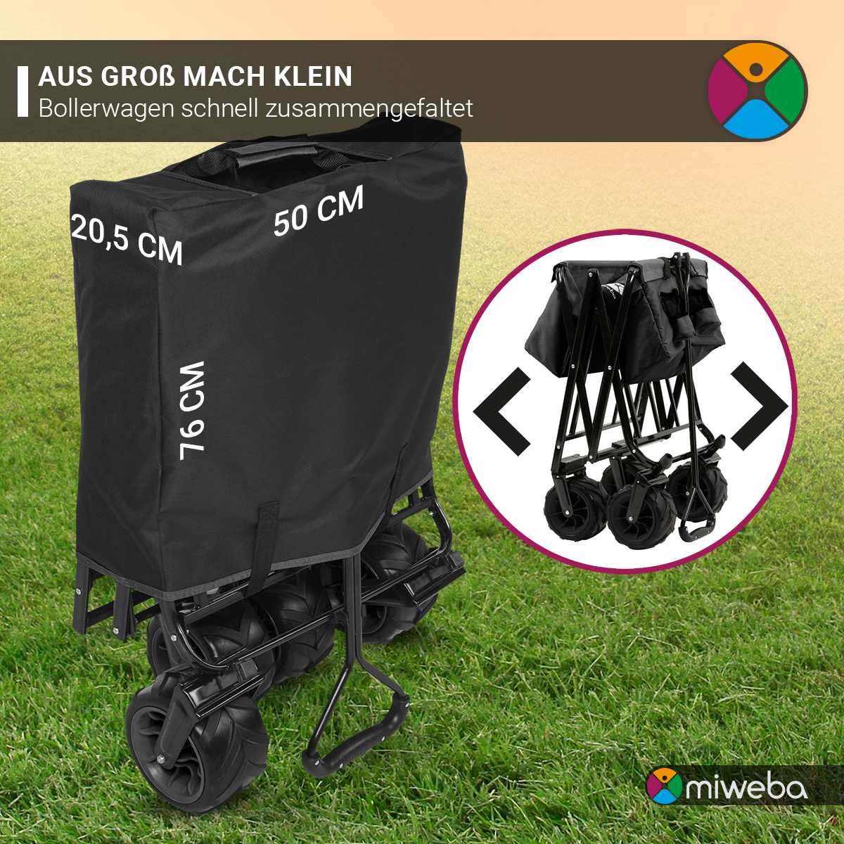 Miweba Bollerwagen MB-30, breite Reifen, faltbarer Bollerwagen mit Außentaschen, bis 120kg belastbar