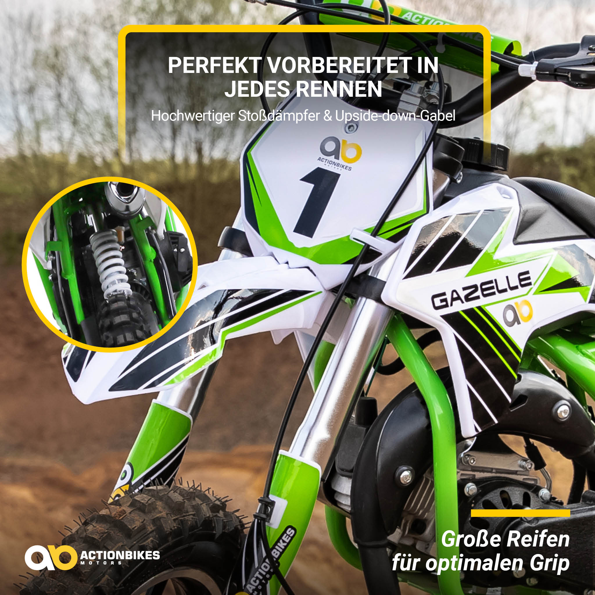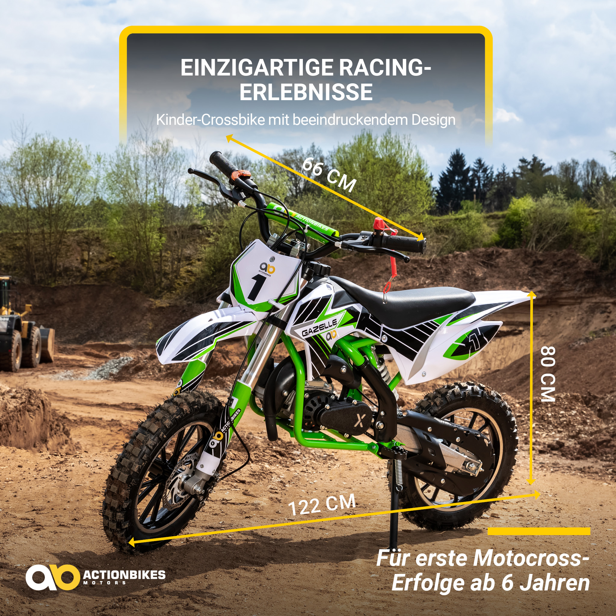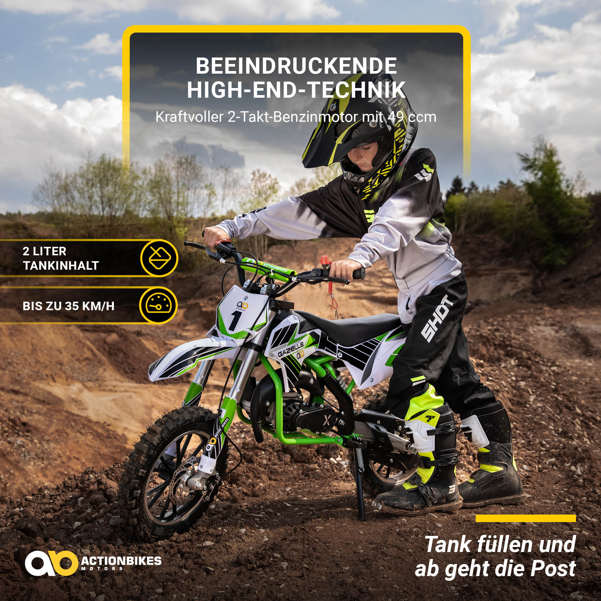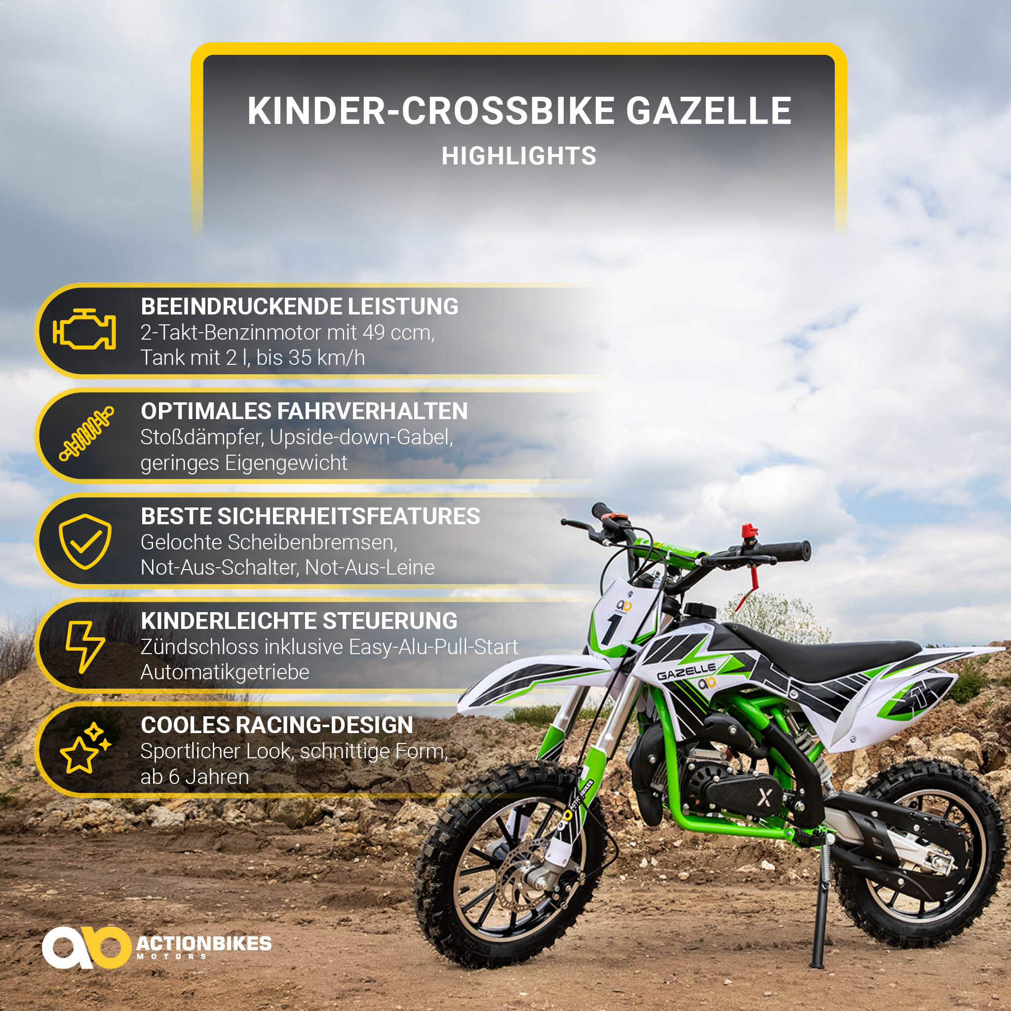 Mini-Crossbike Gazelle, Benzin-Motorrad, 49ccm, 2-Takt-Motor, Easy-Pull-Starter