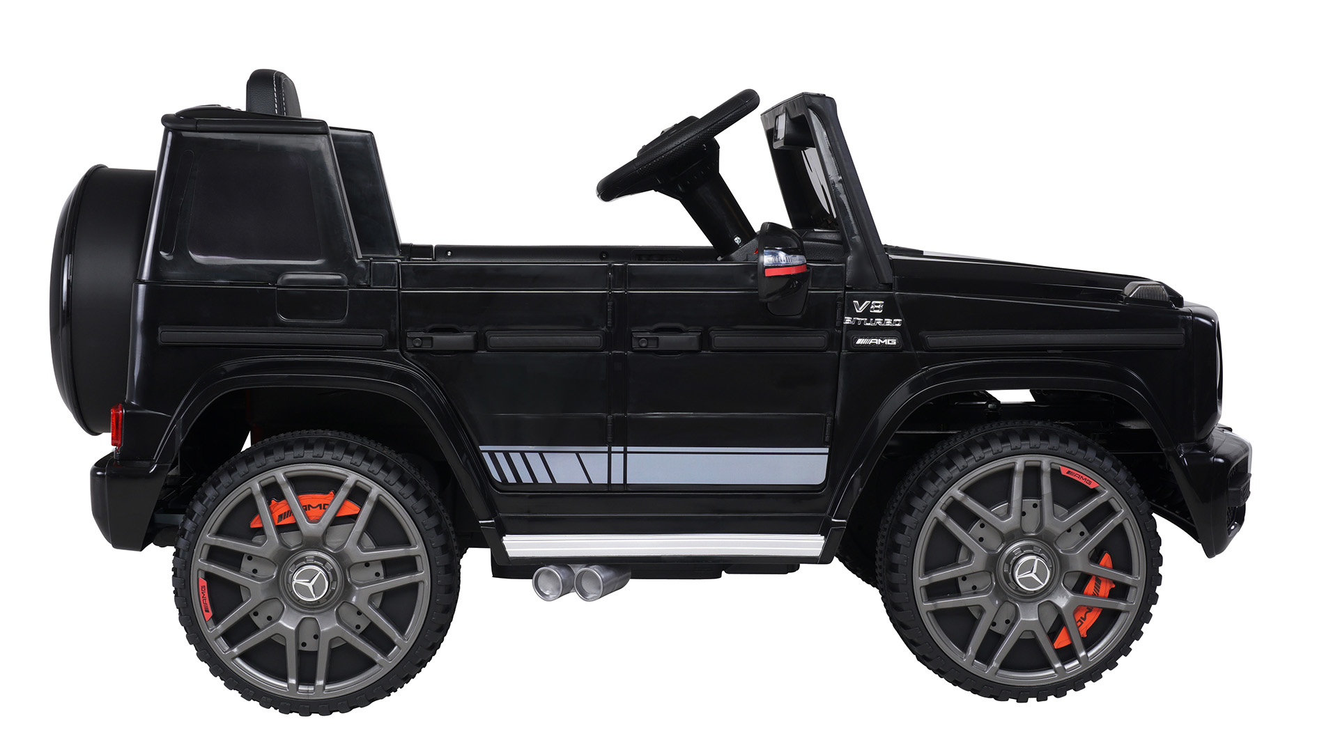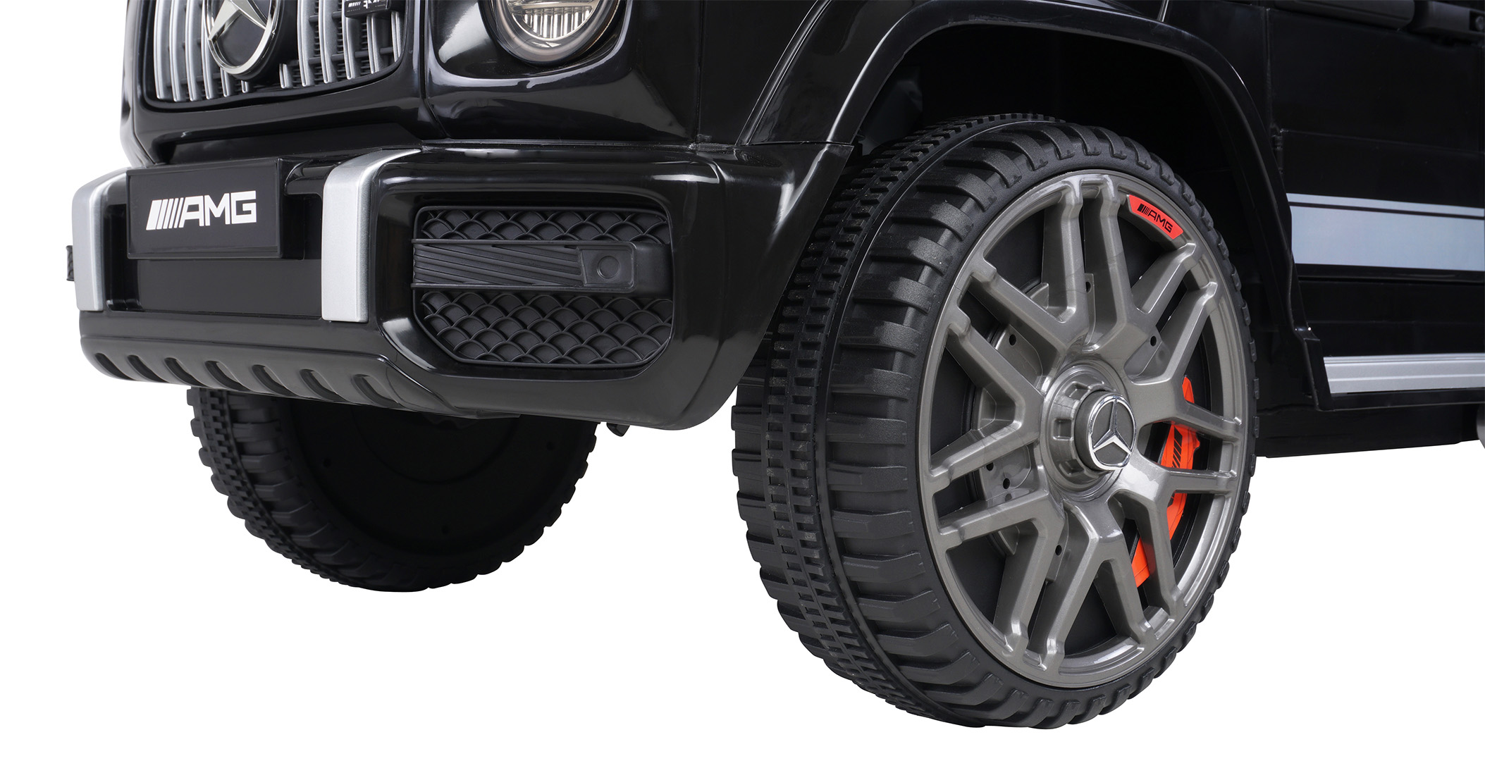Für ein aufregendes Abenteuer braucht es ein gewisses Maß an Action. Deshalb überzeugt das Kinder-Elektroauto Mercedes AMG G63 W463 mit zwei starken Motoren mit je 35 Watt. Diese und ein effektiver 2-Rad-Antrieb machen eine Geschwindigkeit von 3–6 km/h möglich.