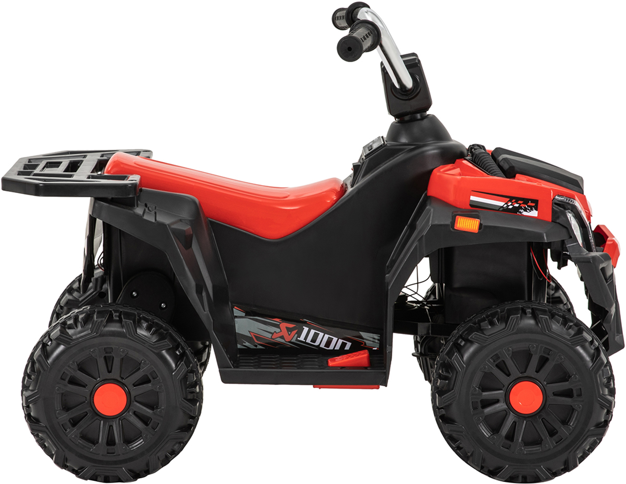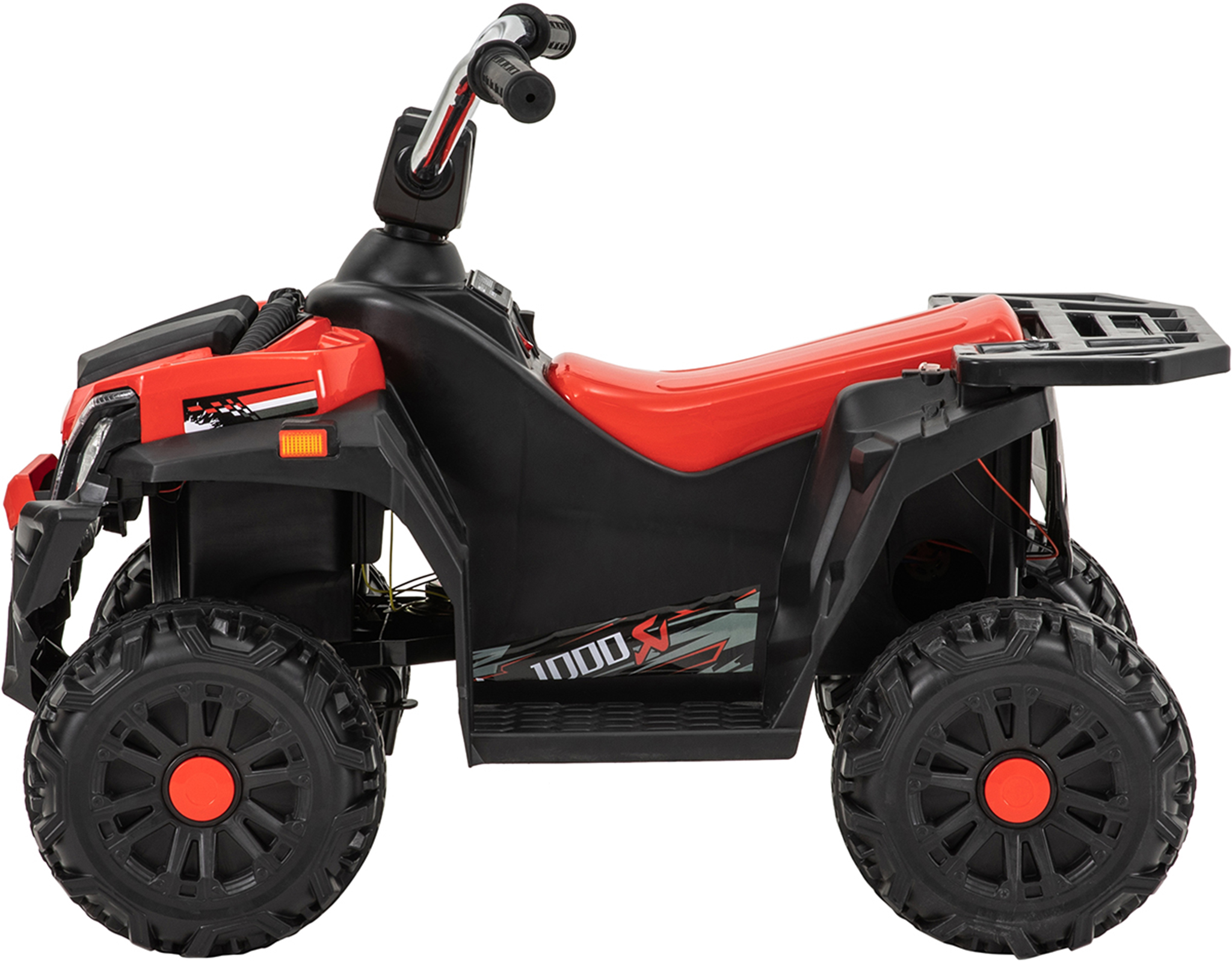 Die LED-Scheinwerfer am Kinder-Elektro-Quad schinden nicht nur mächtig Eindruck, sondern garantieren zudem die maximale Sichtbarkeit. Auch das restliche Design überzeugt: Das Kinderauto in Quad-Optik sieht in Rot wie in Orange sportlich aus. Und dank praktischem Tragegriff ist es nach dem Outdoor-Erlebnis ruckzuck aufgeräumt.