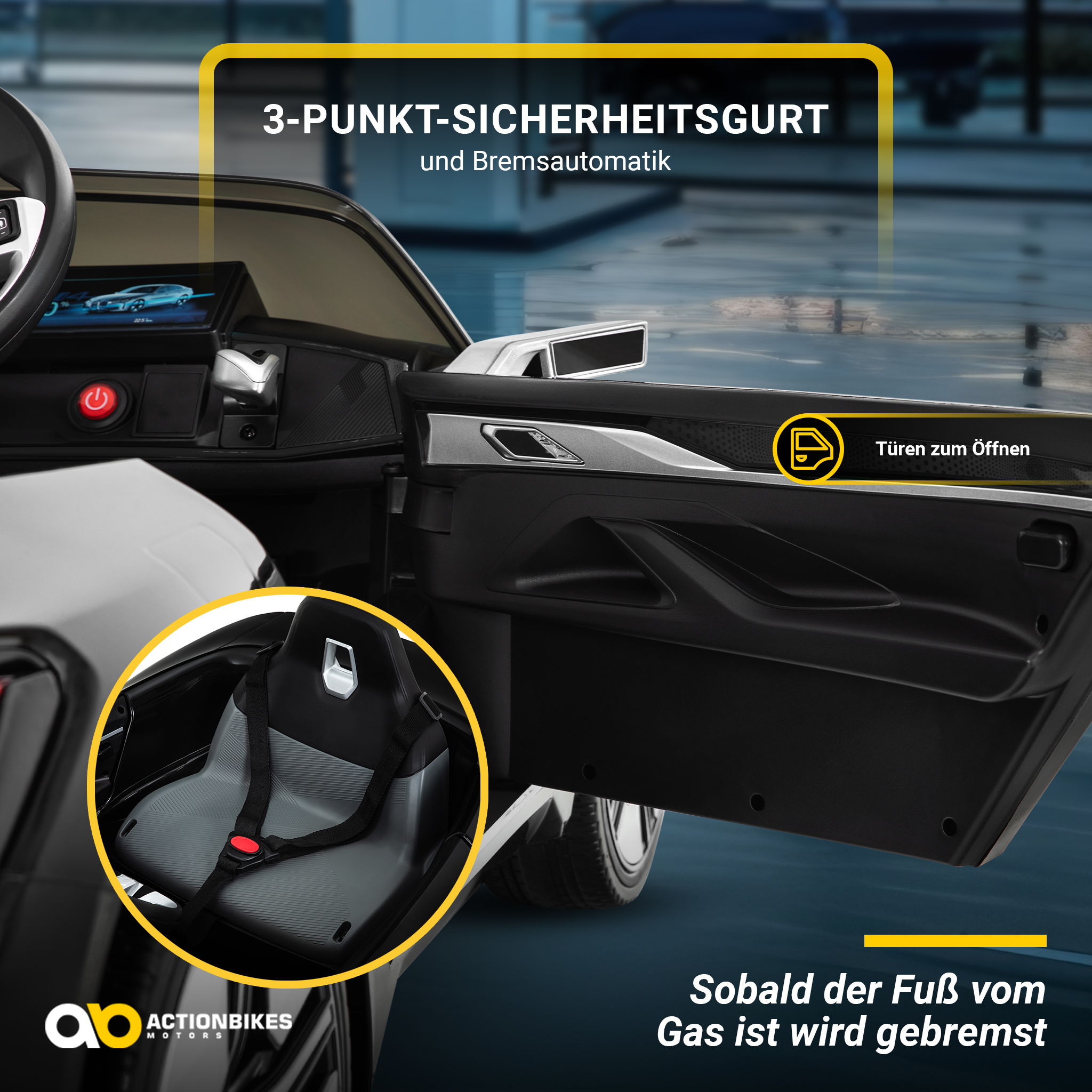 Für maximale Sicherheit ist das Elektroauto mit einem 3-Punkt-Sicherheitsgurt ausgestattet, der kleinen Fahrern während der Fahrt optimalen Halt bietet. Die Bremsautomatik sorgt dafür, dass das Kinder-Elektroauto sofort stoppt, sobald das Gaspedal losgelassen wird.