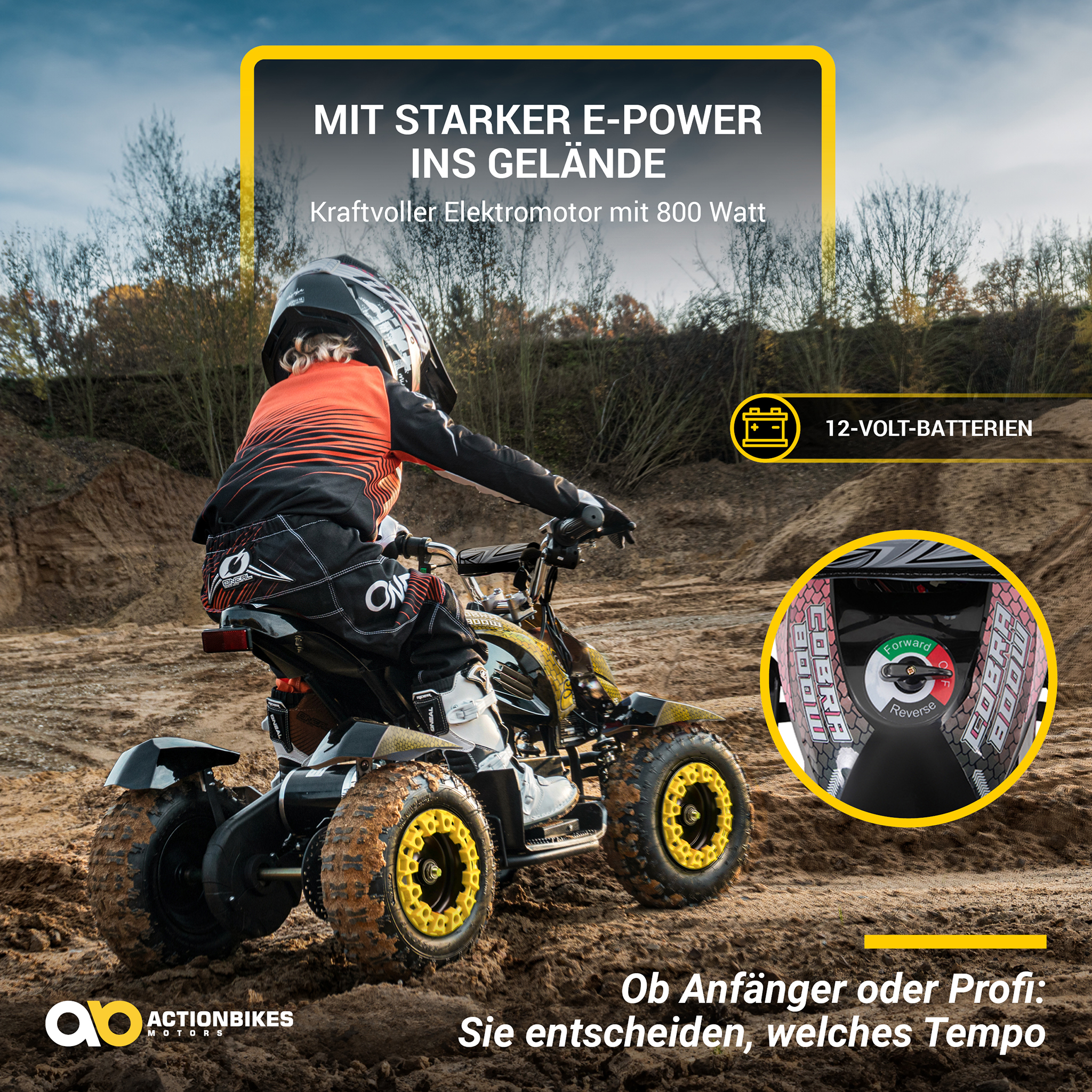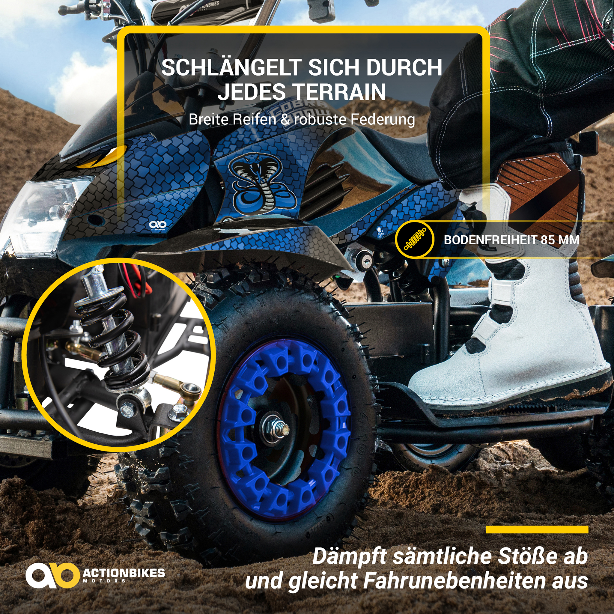 Elektro-Kinderquad Cobra, 800 Watt, bis 24 km/h, ab 8 Jahren, Federung, 3x 12V-Akku, Scheibenbremsen