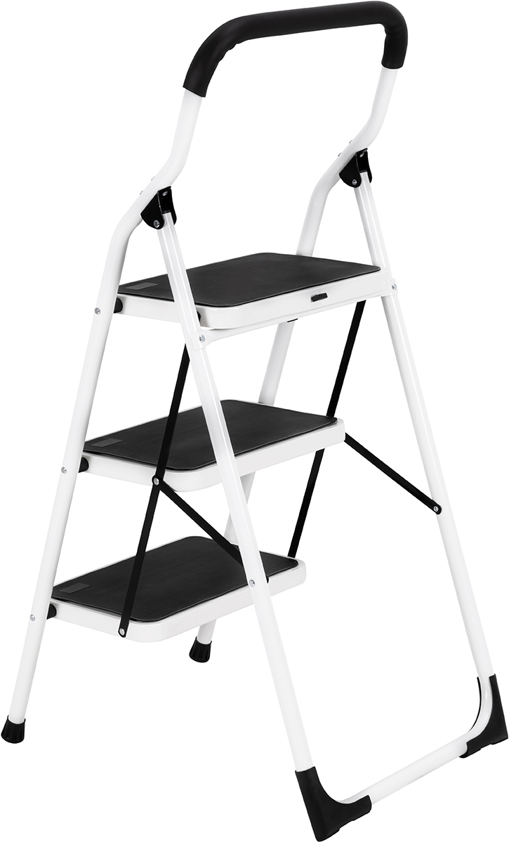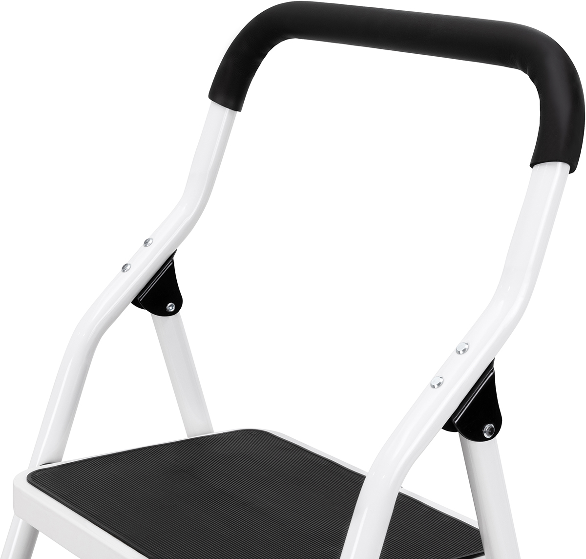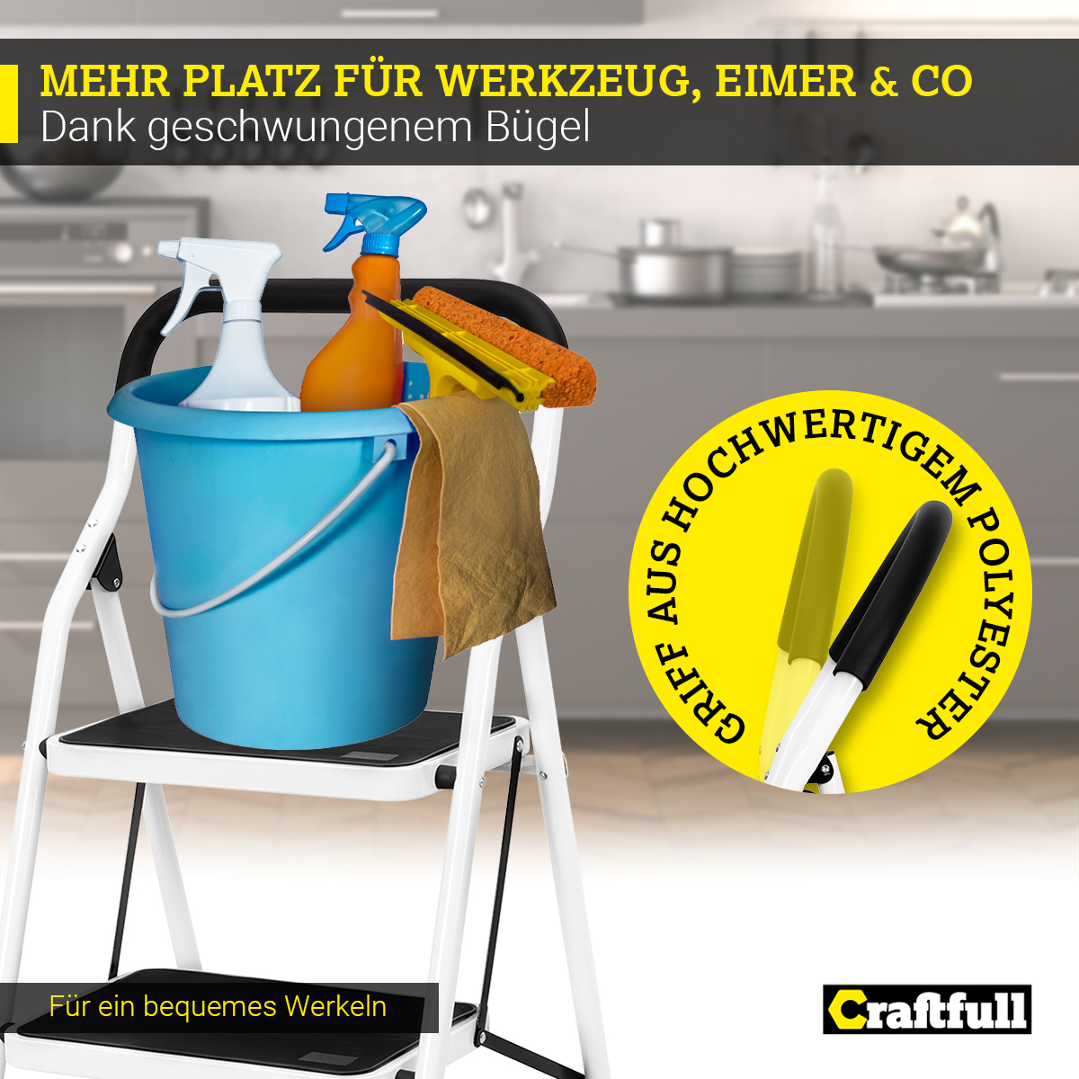 Mit dem Craftfull Klapptritt CF-132A bringen Sie Schwung in Ihre Vorhaben! Denn ein geschwungener Haltebügel zeichnet diese Klapptrittleiter aus. Dadurch ist das Abstellen von Eimern oder anderen Utensilien auf der obersten Stufe möglich. Keine Strebe ist im Weg.