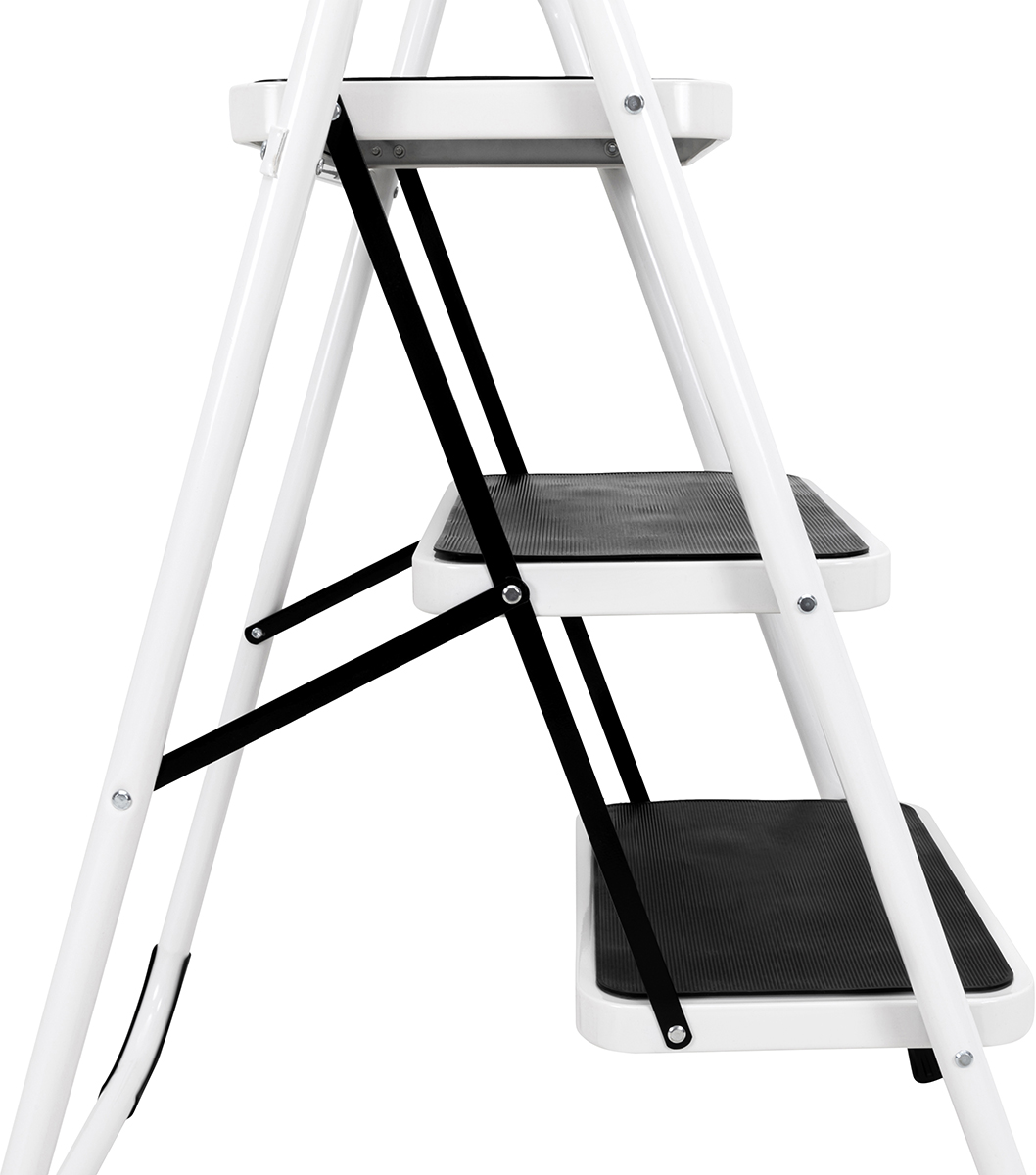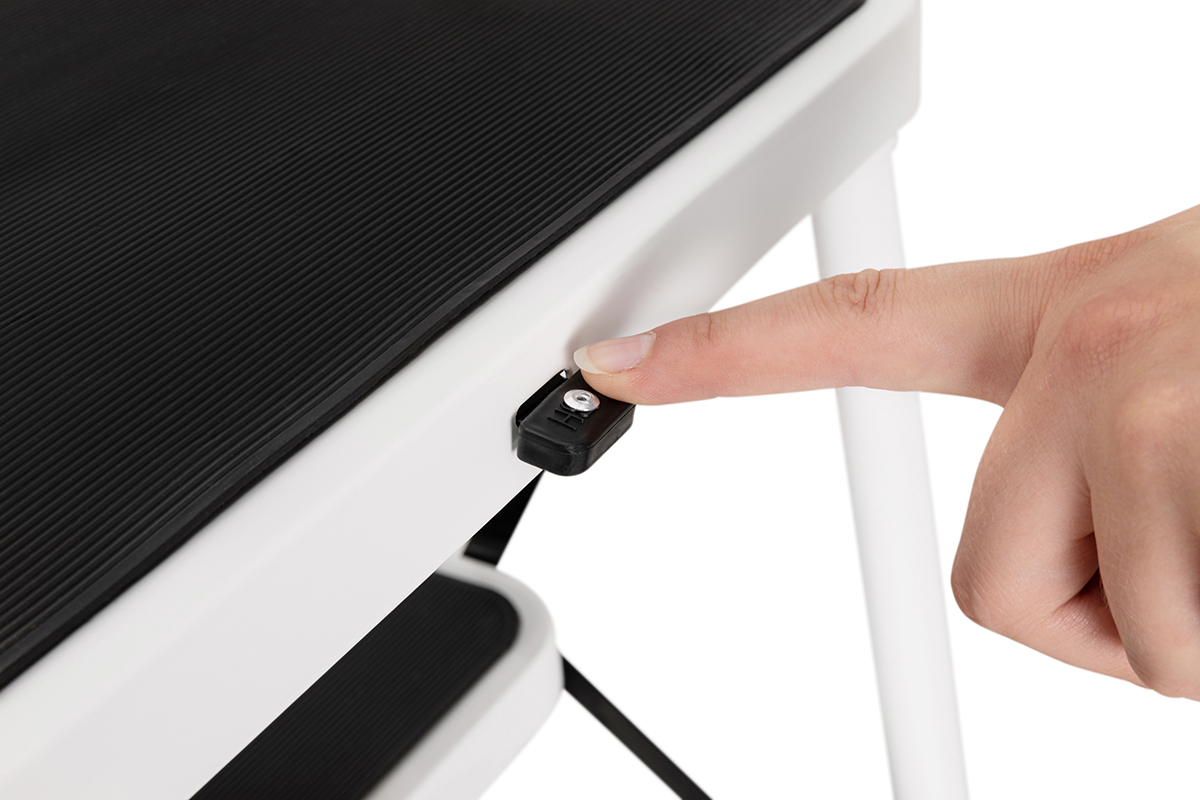 Ein Leiter zum Klappen ist kompakt verstaut und deshalb äußerst praktisch. Eins ist dabei wichtig: Aufgestellt muss das Zusammenklappen unbedingt vermieden werden! Deshalb ist am Craftfull Klapptritt CF-132A ein extra Sicherheitsriegel angebracht. Haken Sie diesen ein, steht die Trittleiter sicher. Mit einem Handgriff schnell gelöst, klappen Sie die Leiter nach getaner Arbeit ruckzuck wieder zusammen.