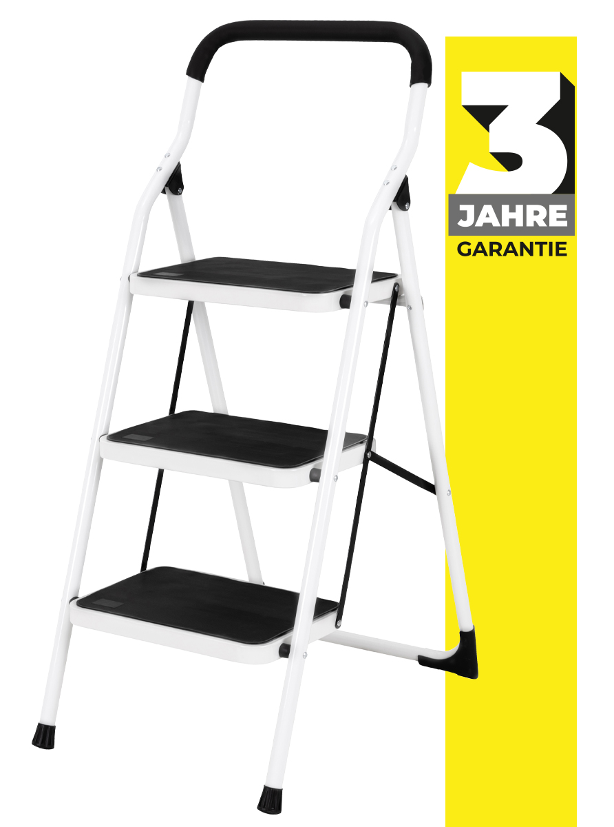 Produkthighlights: | extra große Trittfläche, Geschwungener Haltebügel ermöglicht das Abstellen von Eimern uvm. auf der obersten Stufe, Max. Belastbarkeit von 150.0 kg, Gepolsterter PVC-Haltegriff, Anti-Rutsch Trittfläche, Gummifüße und 3 Jahre Garantie |