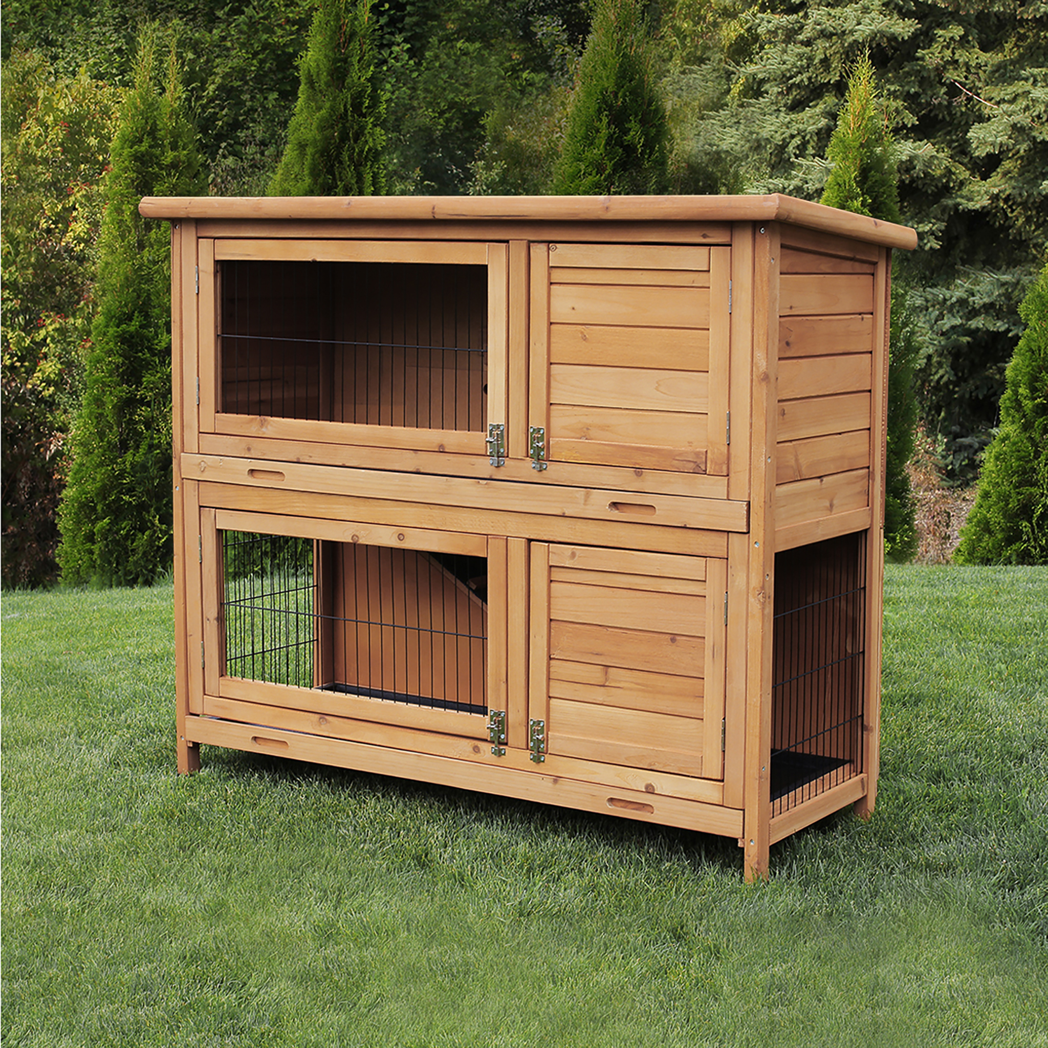 MyAnimal Hasenstall MH-20, 2-stöckig, wetterfest, Kaninchenstall mit 4 Türen, imprägniertes Holz
