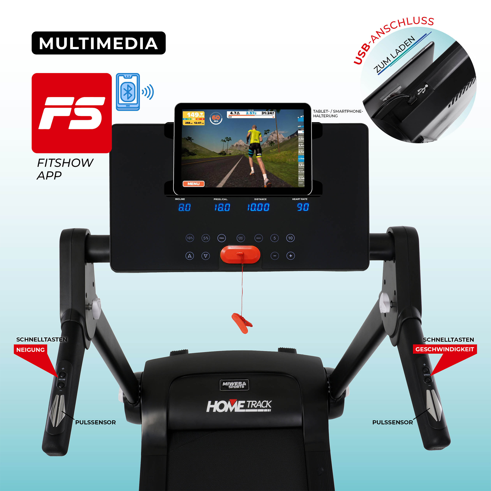 Miweba Sports Laufband Home Track HT3000, mit Steigung, 1300 Watt, 1-16 km/h, 12 Programme, klappbar