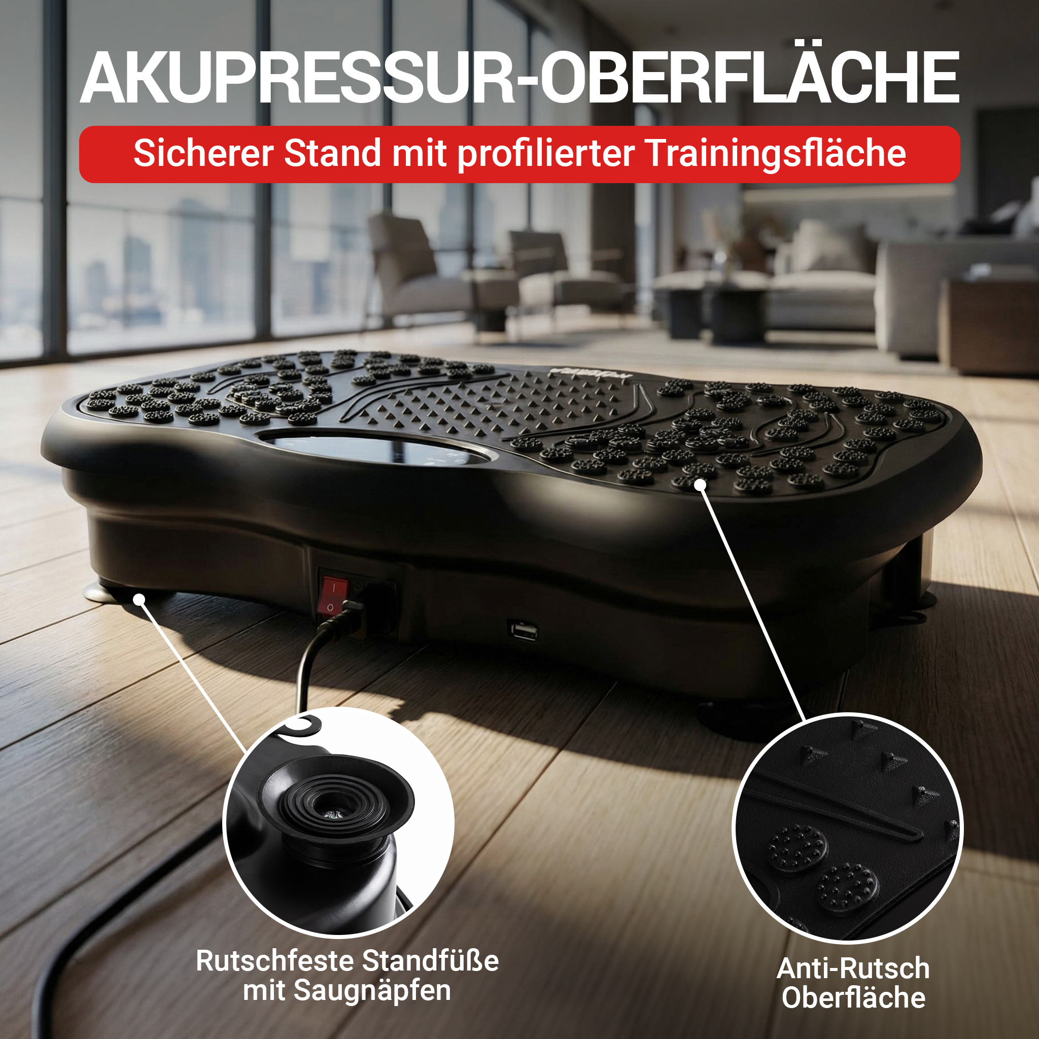 Standfläche: Profilierte, rutschfeste Trainingsoberfläche mit strukturierten Akupressurpunkten und 22 integrierten Magnetperlen