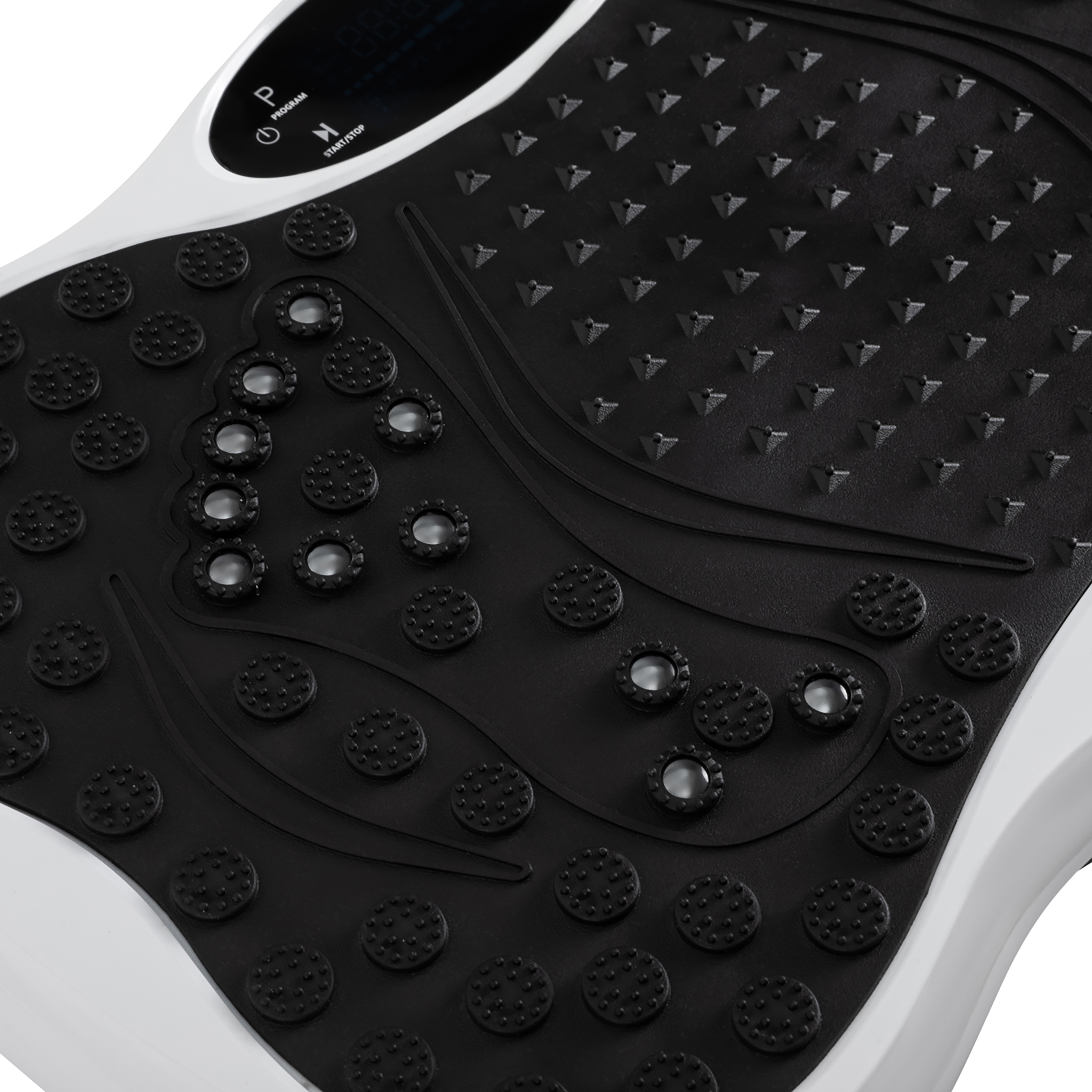 | Produkthighlights | 5 Jahre Garantie, Ganzkörpertraining für Zuhause & Büro, 120 Intensitätsstufen, 5 voreingestellte Programme & manueller Modus, Belastbar bis 150 kg, leiser Betrieb, kompakt & leicht, Akupressur-Standfläche mit 22 Magnetperlen, Bluetooth & Fernbedienung |